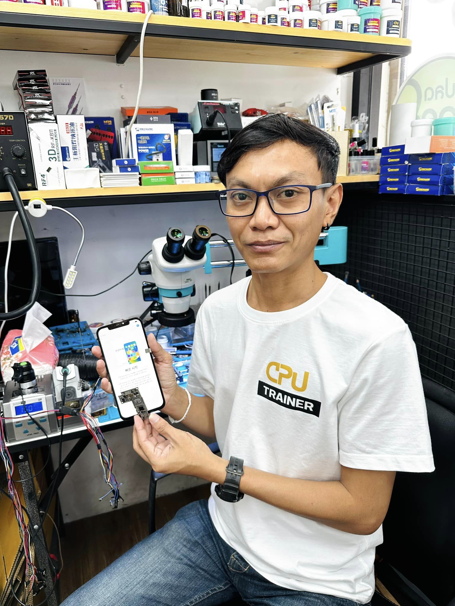 จบไปอีกหนึ่งท่านแล้วนะครับ ขอบคุณ พี่เอ็ม มากๆครับที่เดินทางมาจากจังหวัด สมุทรสาคร และเตรียมไปเปิดร้านที่ จังหวัดสุราษฎร์ และเลือกให้ผมเป็นเทรนเนอร์ สอนซ่อมมือถือ ยกวางไอซีทั่วไป และ งานย้ายบ้านCPU บอร์ด2ชั้น Xs Xsm i11 i11pro i11promax i12 i12pro i12promax ได้เรียนรู้วิธีทำใหม่ๆและเทคนิคต่างๆที่ไม่เคยรู้มาก่อนมากมาย ขอบคุณคับ